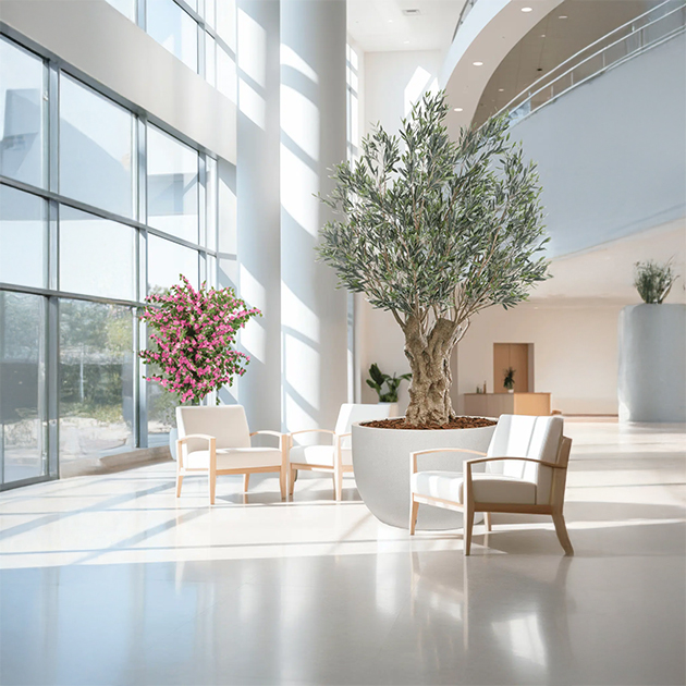 Artificial Mediterranean trees are functional tools for modern workspace design. With zero maintenance and total flexibility, they are the smart, sustainable choice for open-plan layouts that need both form and flow.