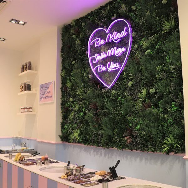Explore the possibilities with Vertically Green and discover how integrating neon signs with our artificial green walls can elevate your business to new heights.