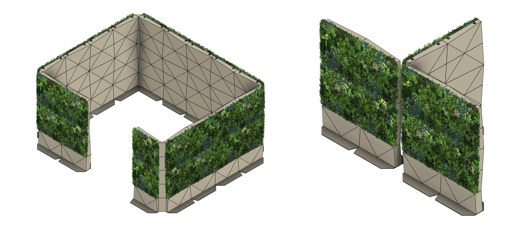 The Foliascreen, green wall room partitions will transform your space, metamorphosing bustling areas into tranquil havens. It offers an array of configurations, from creating secluded booths in a fast-paced office to crafting serene quiet zones in public spaces. There are so many variations, if you can dream it up, there is a Foliasreen configuration to match it. Each configuration Foliascreen customers have achieved is a testament to Foliascreen’s versatility, providing real solutions while enhancing the ambient aesthetics.