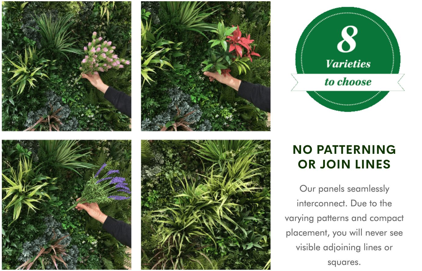 Our 3-panel system ensures seamless coverage, eliminating visible join lines or repeated patterns. This technology makes Vistafolia the gold standard in artificial green wall systems, offering vibrant, natural colors and a variety of textures that mimic real plants.